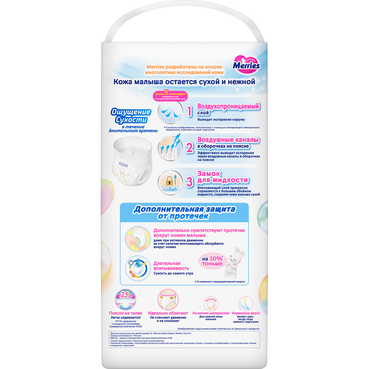 Подгузники-трусики Merries XL 5 размер 12-22кг, 38шт