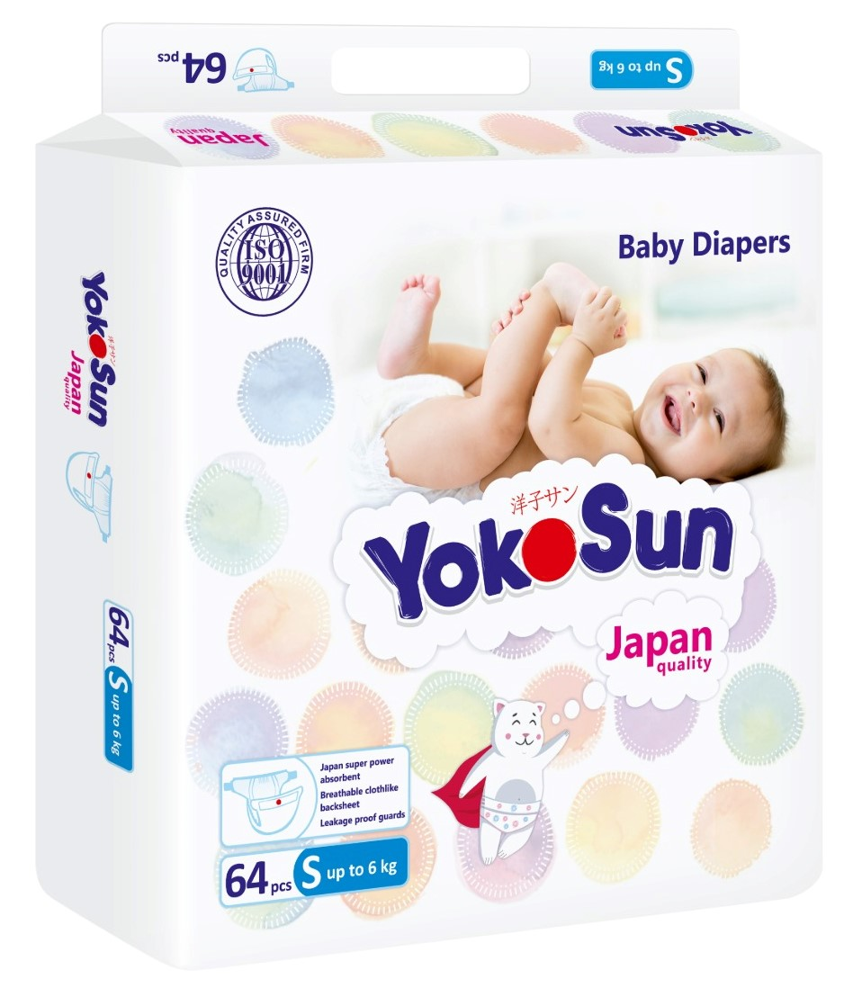 Подгузники Yokosun размер S до 6кг, 64шт