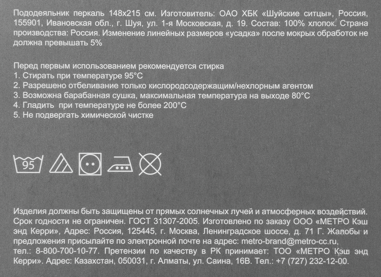 - Размер пододеяльника, см 148 х 215