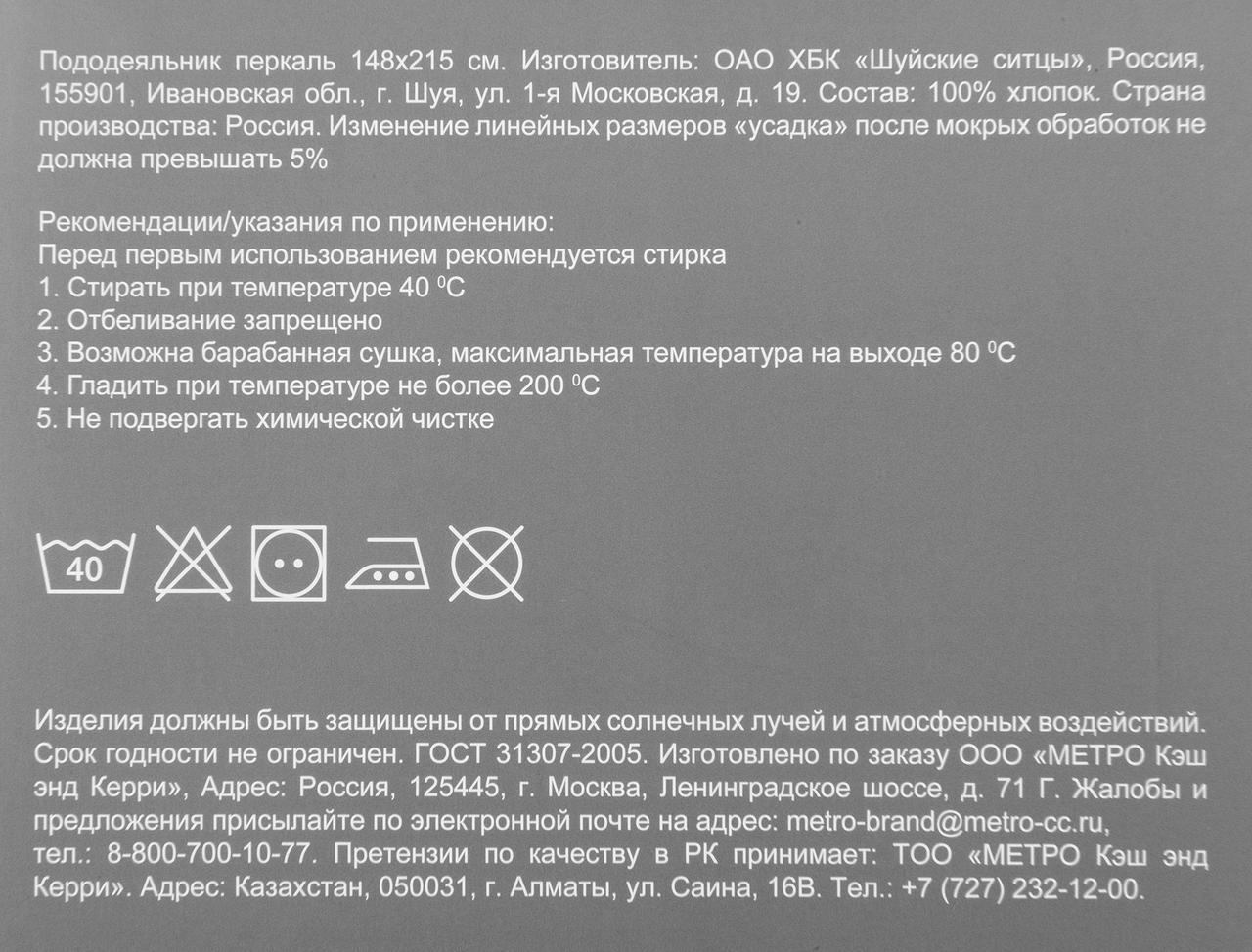 Tarrington House Пододеяльник светло-коричневый перкаль, 148 x 215см удачно сочетает в себе привлекательный внешний вид и хорошее качество. Перкаль – это 100% хлопчатобумажная ткань, при производстве которой создается особое переплетение волокон. Это гарантирует ей гладкость и создает комфортные тактильные ощущения. Материал обладает гипоаллергенными свойствами, хорошо пропускает воздух и не вызывает потливости. В процессе эксплуатации на ткани не образуется заломов, а цвет сохраняет свою яркость и глубину на долгие годы, даже если вы достаточно часто стираете. При уходе за постельным бельем необходимо выбирать деликатный режим стирки при температуре воды не более 40 градусов. Не рекомендуется совмещать пододеяльник из хлопчатобу��ажной ткани с постельным бельем из синтетических волокон. Это может стать причиной образования катышек и ухудшения внешнего вида. На поверхность ткани нанесена специальная пропитка, что позволяет надолго сохранить ее привлекательный внешний вид. Пододеяльник удачно сочетает в себе привлекательный внешний вид и достойное качество. Перкаль – это один из наиболее надежных и долговечных материалов, которые используются для пошива постельного белья. При производстве используется специальный метод плетения волокон, что гарантирует гладкость и нежность материала, а также создает приятные тактильные ощущения. В процессе эксплуатации пододеяльника на нем не образуется катышек. В процессе ухода следует руководствоваться определенными правилами. Выбирать деликатный режим стирки при температуре не более 40 градусов. Изделия из этой ткани не следует должны стираться совместно с постельным бельем из других типов волокон, в том числе синтетических. При несоблюдении этого правила со временем на ткани могут появиться катышки и ее вид ухудшится.