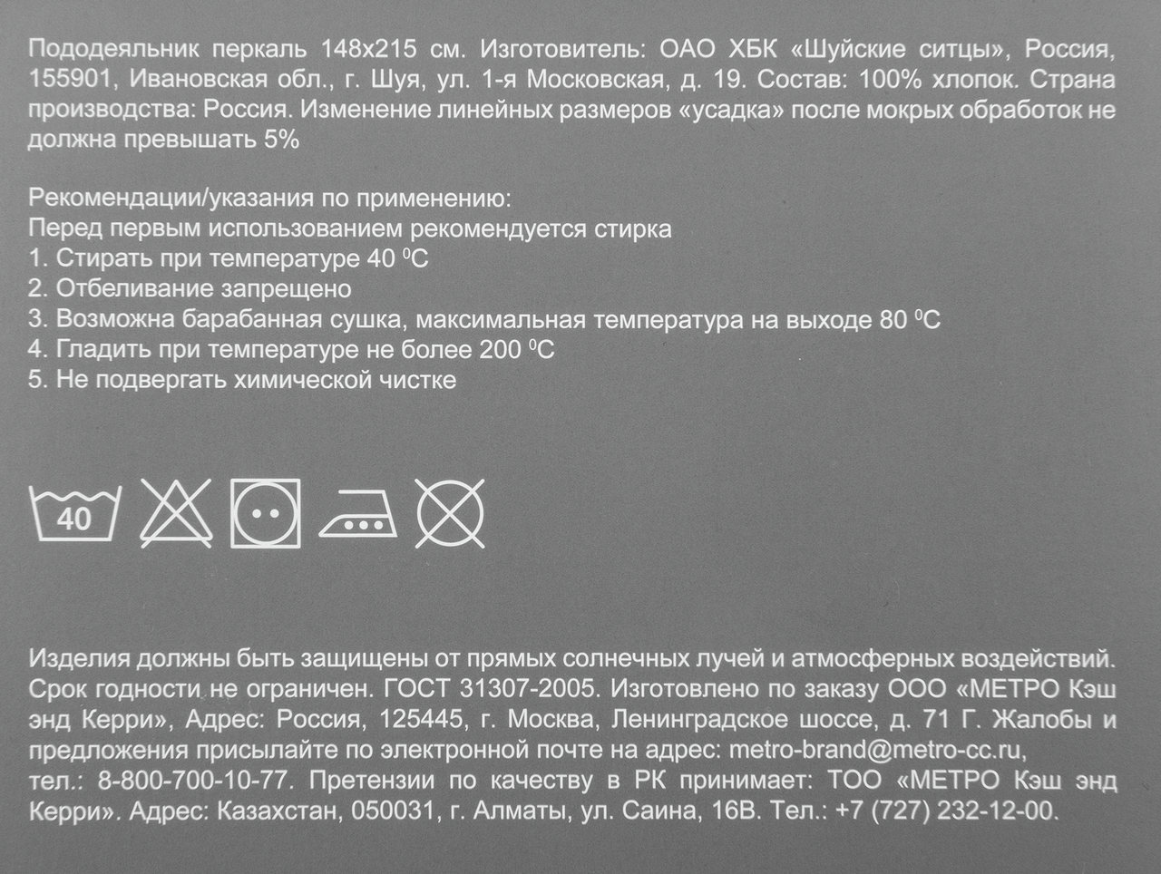 Tarrington House Пододеяльник белый перкаль, 148 x 215 см удачно сочетает в себе привлекательный внешний вид и хорошее качество. Перкаль – это 100% хлопчатобумажная ткань, при производстве которой создается особое переплетение волокон. Это гарантирует ей гладкость и создает комфортные тактильные ощущения. Материал обладает гипоаллергенными свойствами, хорошо пропускает воздух и не вызывает потливости. В процессе эксплуатации на ткани не образуется заломов, а цвет сохраняет свою яркость и глубину на долгие годы, даже если вы достаточно часто стираете. При уходе за постельным бельем необходимо выбирать деликатный режим стирки при температуре воды не более 40 градусов. Не рекомендуется совмещать пододеяльник из хлопчатобумажной ткани с постельны�� бельем из синтетических волокон. Это может стать причиной образования катышек и ухудшения внешнего вида. На поверхность ткани нанесена специальная пропитка, что позволяет надолго сохранить ее привлекательный внешний вид. Пододеяльник удачно сочетает в себе привлекательный внешний вид и достойное качество. Перкаль – это один из наиболее надежных и долговечных материалов, которые используются для пошива постельного белья. При производстве используется специальный метод плетения волокон, что гарантирует гладкость и нежность материала, а также создает приятные тактильные ощущения. В процессе эксплуатации пододеяльника на нем не образуется катышек. В процессе ухода следует руководствоваться определенными правилами. Выбирать деликатный режи�� стирки при температуре не более 40 градусов. Изделия из этой ткани не следует должны стираться совместно с постельным бельем из других типов волокон, в том числе синтетических. При несоблюдении этого правила со временем на ткани могут появиться катышки и ее вид ухудшится.