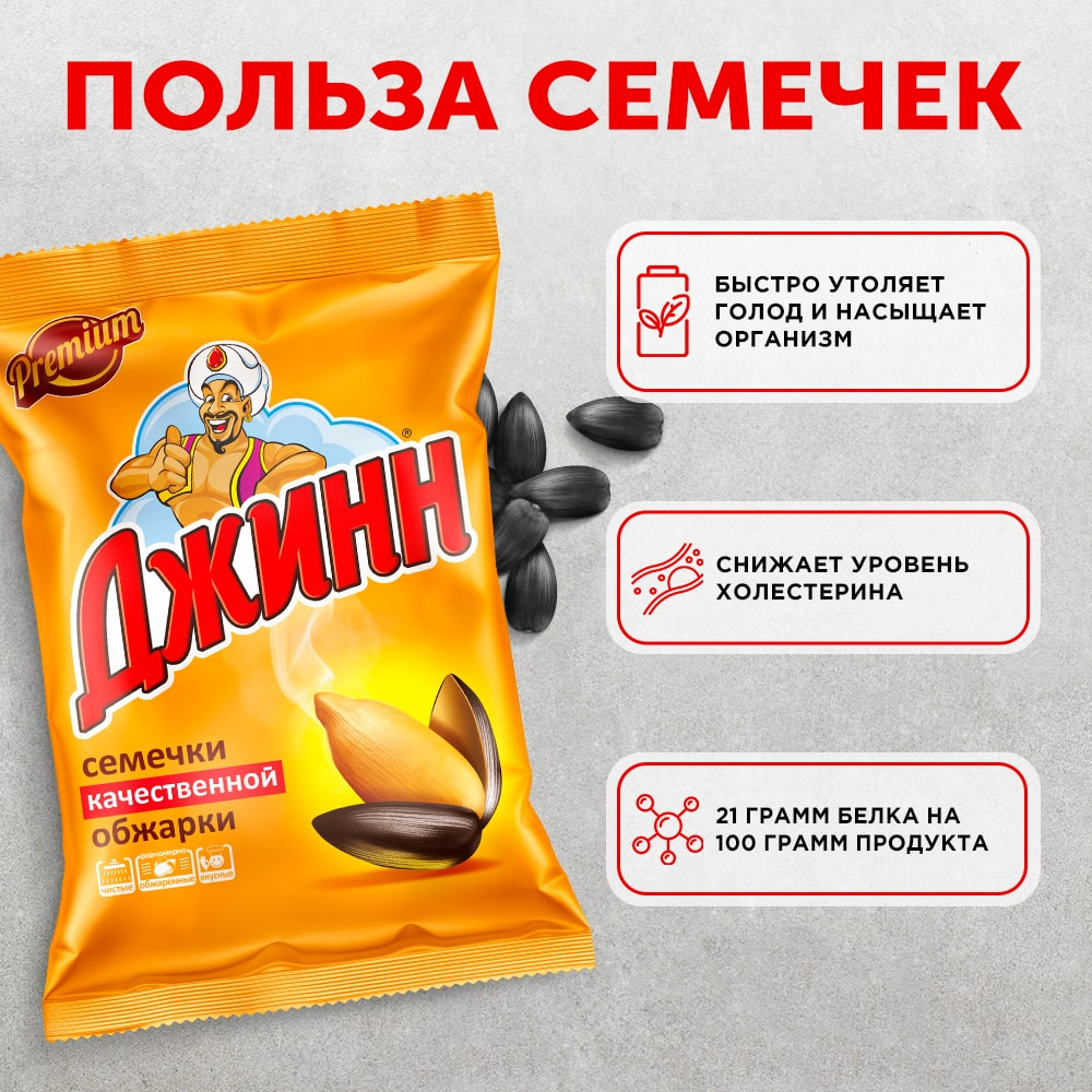 Семечки подсолнечные Джинн жареные 140 г станут отличным перекусом во время просмотра футбольного матча или любимого сериала. Они отличаются в меру соленым вкусом и приятным ароматом подсолнечника. Для их производства используются семена, выращенные на полях Краснодарского края, Адыгеи и Алтая. В упаковку попадают самые крупные семечки, без дефектов. Их сушат по специальной технологии, поэтому они сохраняют свои вкусовые свойства и легко отделяют от кожуры. Семечки подсолнечника богаты витаминами В, Е, аминокислотами и другими полезными веществами. Их употребление положительно воздействует на состояние волос, ногтей и кожи. Они укрепляют стенки сосудов, нормализуют работу желудочно-кишечного тракта, помогают бороться со стрессами. Сегодня компания Смарт является одним из федеральных лидеров рынка семян подсолнечника и арахиса в России, странах СНГ, Европы и Азии. Продукция Смарт прочно ассоциируется у покупателей с качеством и инновациями. Собственные сельскохозяйственные комплексы компании Смарт позволяют гарантировать высокое качество сырья, а сертифицированные лаборатории, оснащенные современным оборудованием – контролировать соответствие продукции, предъявляемым требованиям. Но продукция компании Смарт не только качественная, но и полезная для здоровья.
