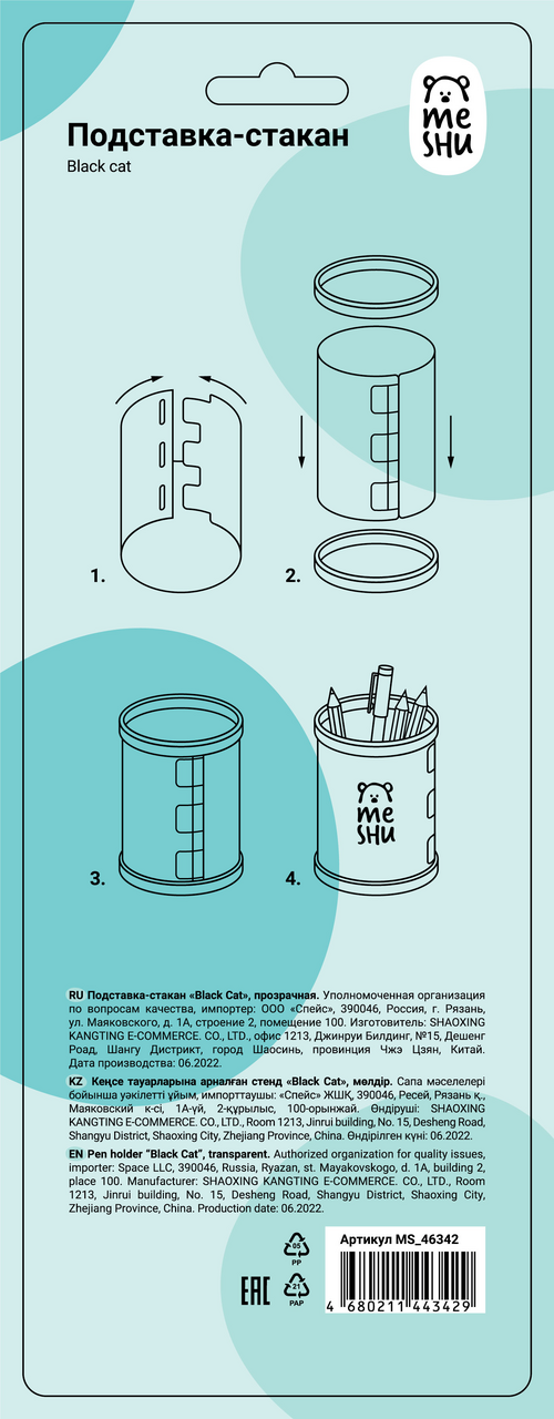 Подставка-стакан Meshu в стильном дизайне предназначена для хранения пишущих принадлежностей. Упакована в ОПП пакет с европодвесом. Схема сборки подставки указана на упаковке.