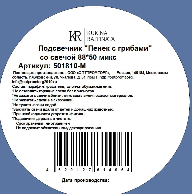 Подсвечник Kukina Raffinata Пенек с грибами со свечой