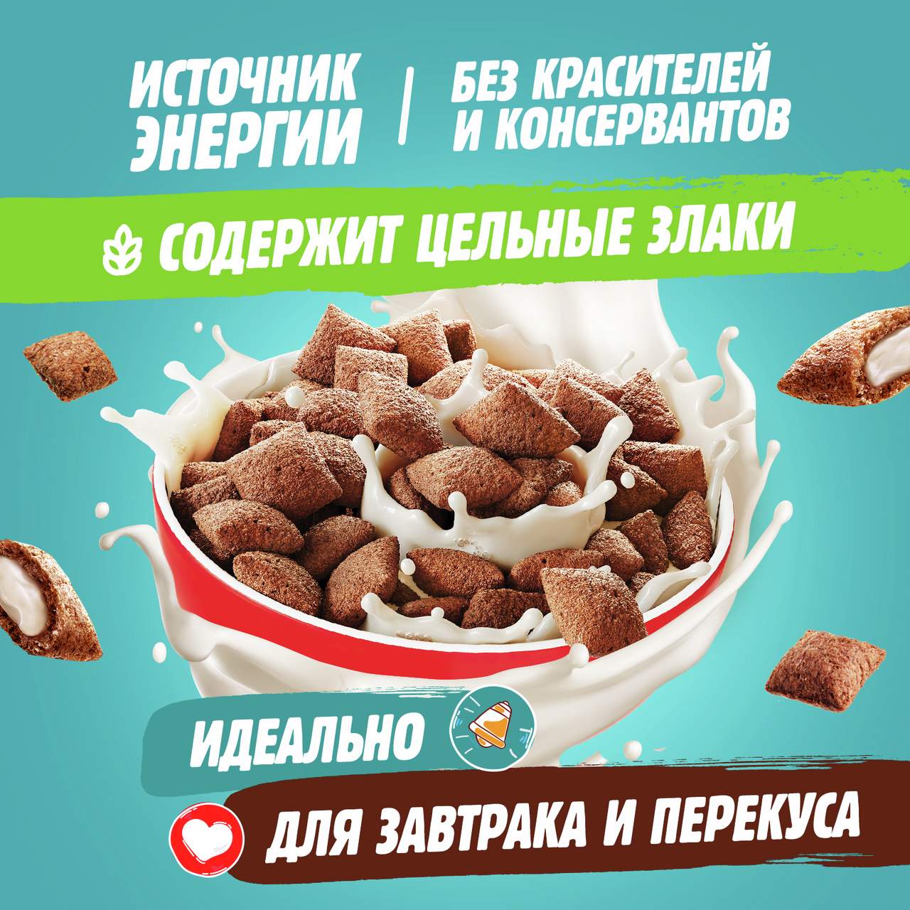 Хрустящие подушечки, наполненные нежнейшей молочной начинкой, — вот секрет вкусного и быстрого завтрака! Цельное зерно, входящее в состав подушечек, делает этот готовый завтрак невероятно питательным, а тающая начинка — потрясающе вкусным! Вот почему их так любят и дети, и взрослые, с молоком или просто с чаем.