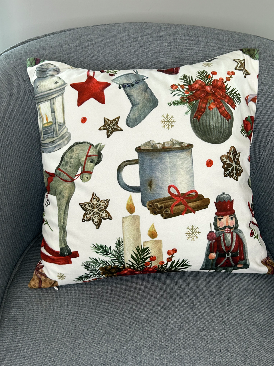 Подушка декоративная на молнии, размер 45*45см. Съемный чехол выполнен из бархата с печатью рисунка Щелкунчик. Удобное решение для стульев на кухне, а также для садовой мебели. Она также может быть стильным элементом декора для вашего дома и обеспечивает комфорт во время сидения на стуле с твердой поверхностью, а также защищает дерево или текстиль сиденья от загрязнений.