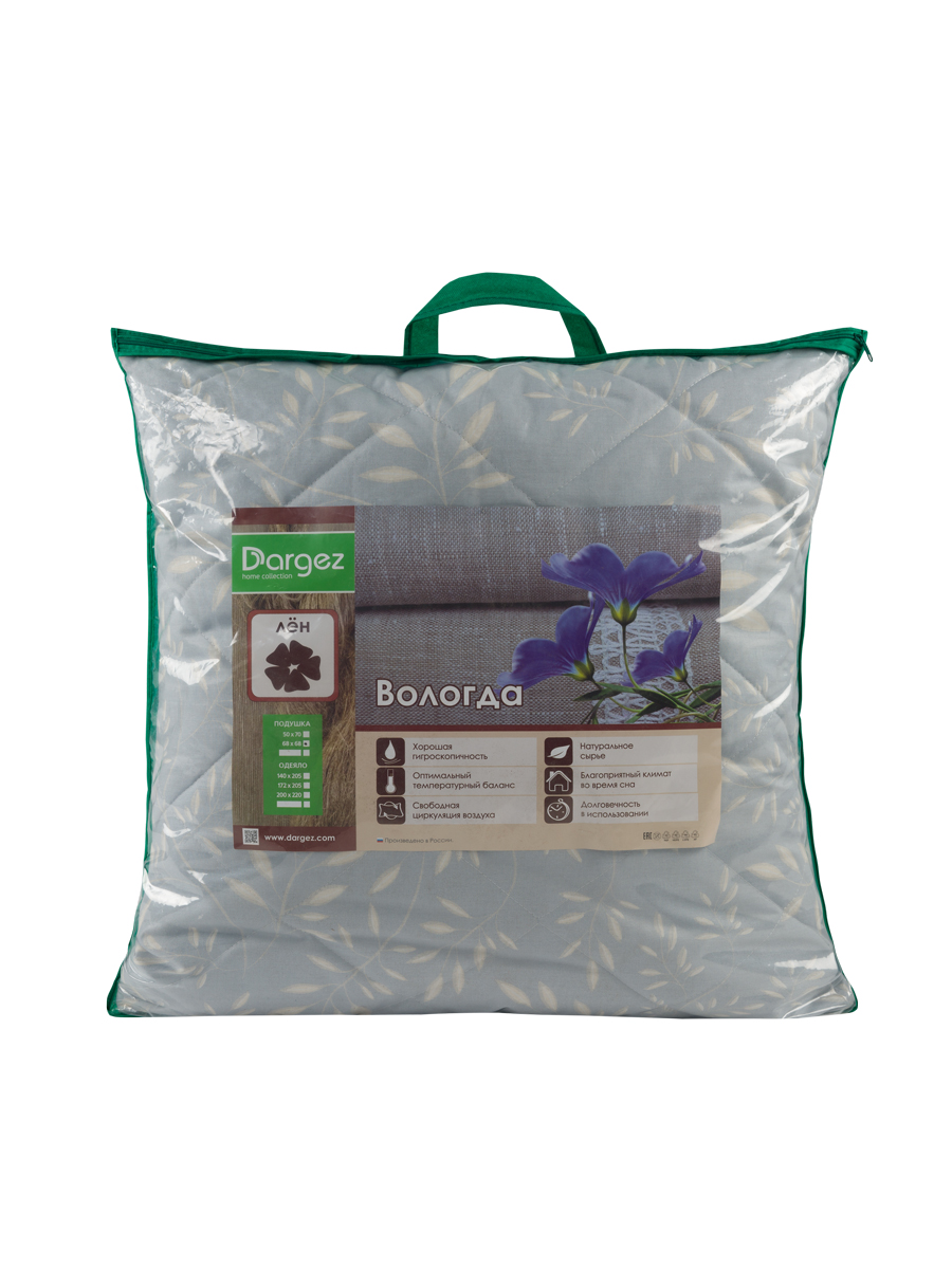 Подушка Dargez Вологда льняное волокно-полиэфимерное волокно, 68 x 68см - Льняное волокно – натуральный наполнитель, обладающий хорошей гигроскопичностью и гипоаллергенными свойствами. Лен является своеобразным природным антисептиком – он эффективно противостоит разнообразным грибкам, является отличным барьером для любых болезнетворных бактерий. За счет своего строения льняное волокно обладает способностью быстро впитывать влагу, выделяемую человеческим телом в процессе сна, поддерживая оптимальный уровень влажности.Лен – дышащий материал, который обеспечивает эффективную естественную вентиляцию
