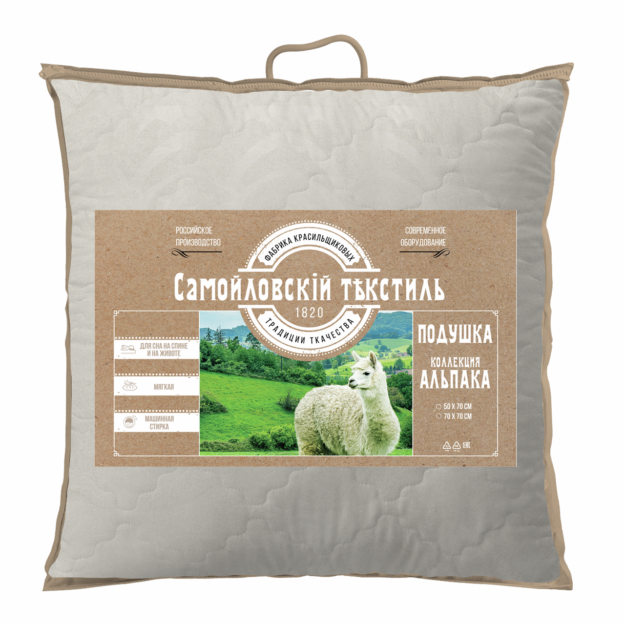 Подушка Самойловский текстиль шерсть альпака 40% полиэстер 60%, 70 x 70 см разработана для обеспечения комфортного и здорового сна. Она поможет просыпаться отдохнувшим и полным сил. Натуральная шерсть альпака — уникальный природный материал, оказывающий лечебно-профилактическое действие, создавая комфортную атмосферу во время сна. В состав такой шерсти не входит ланолин, животный воск, который накапливает пыль и микроорганизмы, вызывающие аллергию. Еще одним огромным преимуществом является гигроскопичность и терморегуляция. Во время сна вместе с влагой выводятся токсичные вещества, однако подушка будет на ощупь всегда сухой и приятной. Все природные качества шерсти идеально сохраняются благодаря специально разработанному щадящему способу промывки волокон, а специальная технология вычесывания делает изделия легкими и пушистыми. Мягкая, упругая, невысокая подушка подходит взрослым и детям. Она легкая, воздушная, способна дышать, сжиматься и быстро восстанавливать свой объем. Для любого положения сна: на животе, на спине, на боку. Подушка подстраивается под формы головы и шеи, обеспечивая правильное положение спины во время сна.