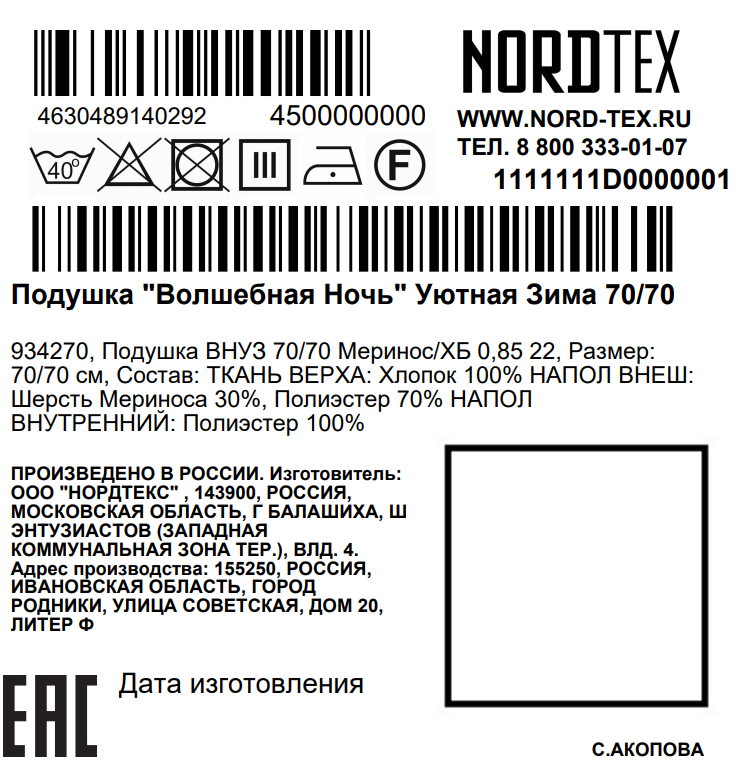 Марка домашнего текстиля Волшебная ночь создана для людей, открытых всему новому: они любят эксперименты, играют со стилем и модой, ни в чем не ограничивают полет своей фантазии. Предназначена для комфортного сна. Изготавливается по технологии TwinZone: два различных по структуре и составу слоя обеспечивают максимальный комфорт во время сна. Внешний слой с природными материалами создает особый микроклимат, отвечает за приятные тактильные ощущения, внутренний - гарантирует упругость и поддержку шеи.