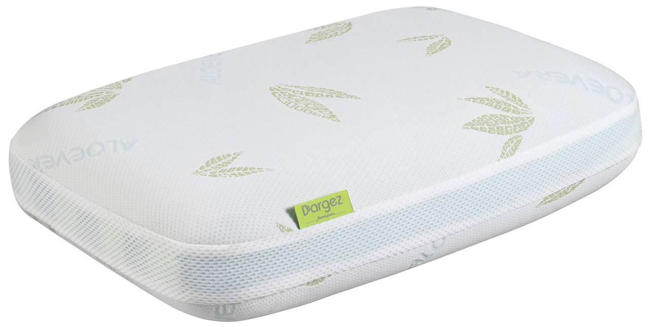 Подушка Dargez Climate Control эргономичная, 38 x 58 x 13 см подойдет как женщинам, так и мужчинам, Съемный чехол на молнии из трикотажного полотна с пропиткой алоэ вера обогащает клетки организма витаминами, расслабляет мышцы и обладает релаксирующим действием. Изделие помогает коже удерживать влагу, нежно ухаживая за ней, обладает антисептическими и противовоспалительными свойствами, нормализует работу всех обменных процессов, повышая общий тонус организма. Вшитый бортик из 3D-сетки способствует дополнительному воздухообмену. Форма подушки состоит из двух зон. Одна сторона (лето) обладает охлаждающим эффектом, что обеспечивает повышенный воздухообмен, отведение тепла, делает поверхность прохладной, при этом испаряет влагу, поддерживает оптимальную температуру головы. Вторая сторона (зима) отличается повышенной мягкостью: хорошо сохраняет тепло, идеально повторяет контуры головы. Подушка упакована в красивую коробку с ручкой, что делает ее отличным подарком на любой праздник.