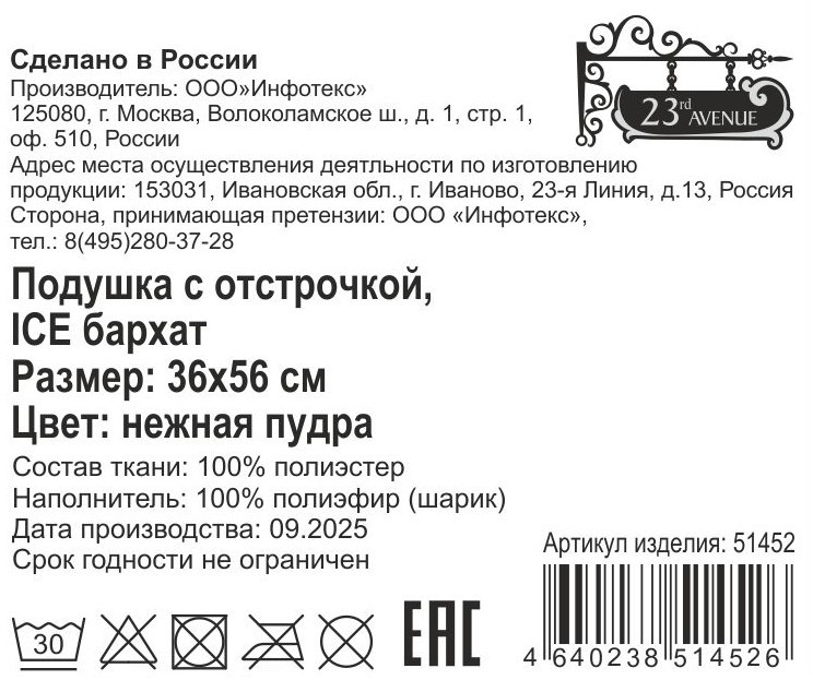 Подушка декоративная 23rd Avenue Ice пуговицы бархат нежная пудра, 36 x 36см