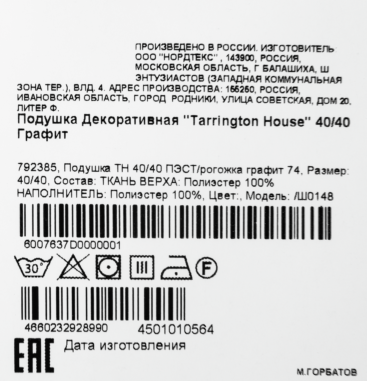 Tarrington House Подушка декоративная рогожка графит, 40 x 40см - лаконичный дизайн и универсальные трендовые цвета украсят любое помещение: подушка будет гармонично смотреться в любом интерьере: подойдет для дома, дачи, кафе, летних веранд. Полиэфирное волокно в наполнителе – современный и практичный материал. Ткань из 100% полиэстера прочная и износостойкая, легко стирается и быстро сохнет. Практичная – минимально подвержена загрязнениям, не впитывает запахи, не задерживает пыль. Декоративная подушка может также служить прекрасным дополнением интерьера балкона, беседки или дачи, обеспечивая удобство отдыха на свежем воздухе. Рекомендуем дополнить интерьер другими предметами из коллекции: скатертями и подушками для стула в одной цветовой гамме или в разных, гармоничных цветах.