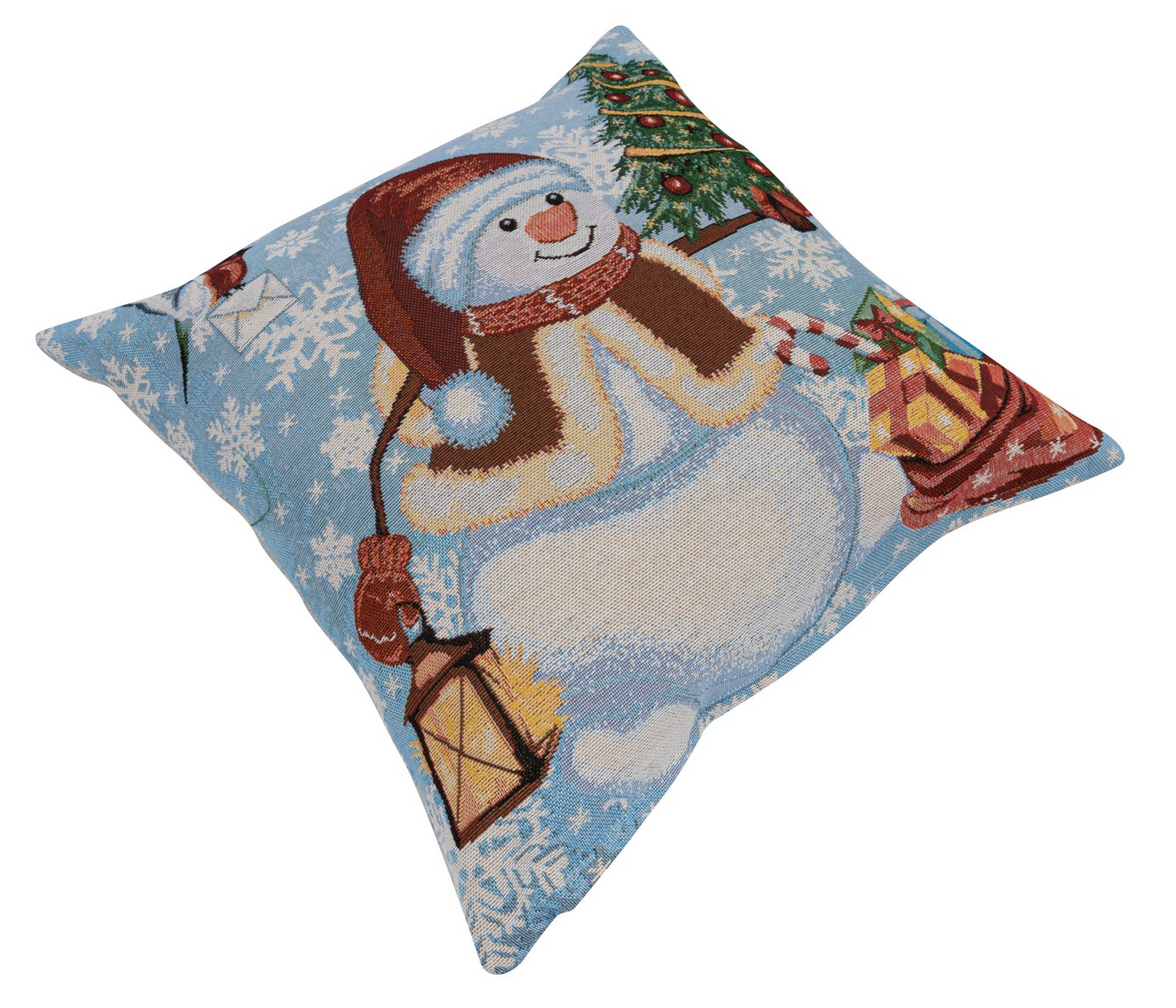 Подушка декоративная Снеговик гобеленовая двусторонняя, 36 x 36см