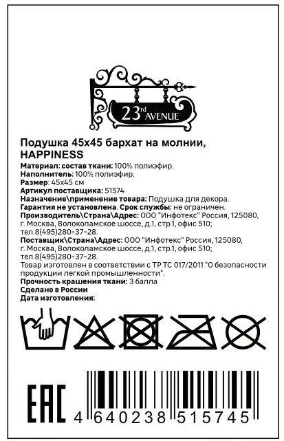 Подушка декоративная 23rd Avenue Happiness на молнии, 45 х 45см