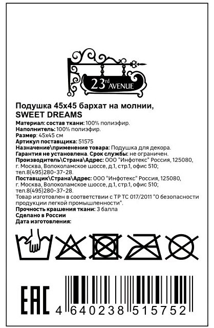 Подушка декоративная 23rd Avenue Sweet dreams на молнии, 45 х 45см
