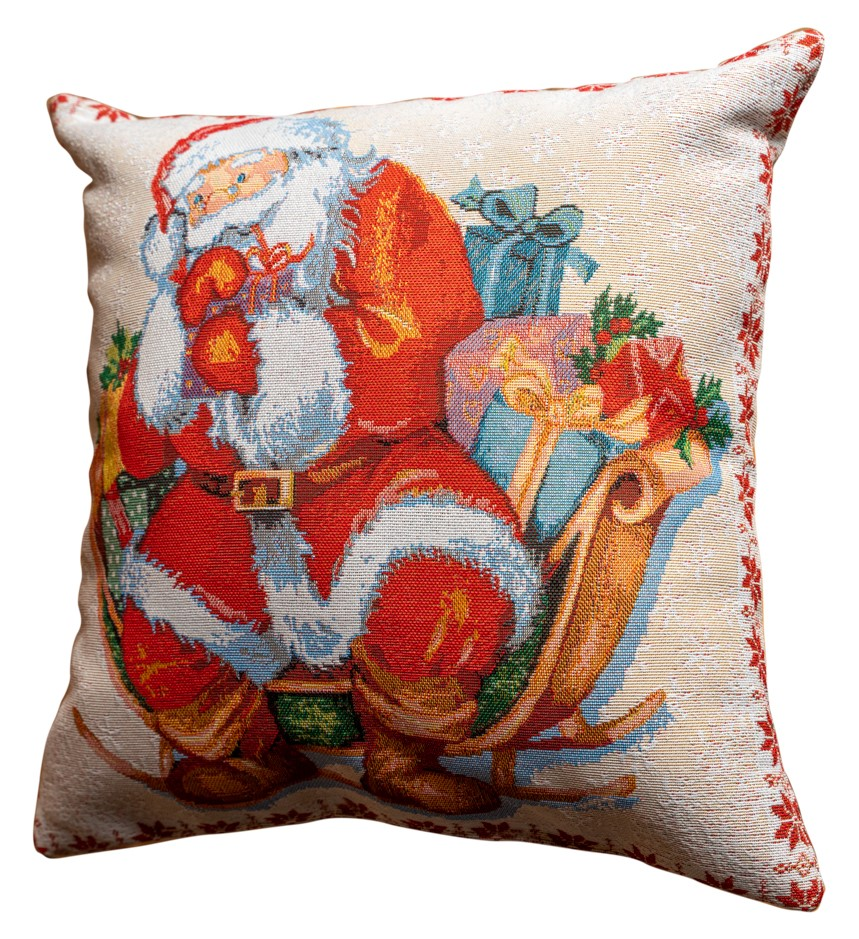 Подушка декоративная гобелен двусторонняя Подарок Санты, 36 x 36см