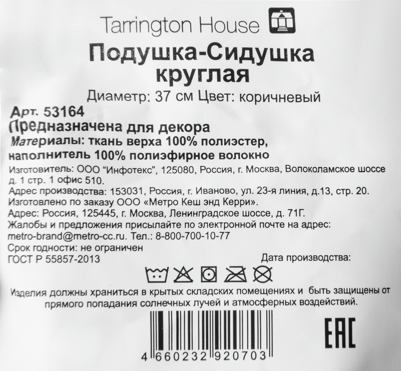 Tarrington House Подушка коричневая для мебели диаметр 37 см круглая с тафтингом отличные впишется в разные стили и сможет немного взбодрить интерьер. Эта круглая подушка с тафтингом сочетает в себе яркий цвет, удобство и дизайн, чтобы сделать мебель более привлекательной и комфортной. Основные достоинства: — Стильный внешний вид. Орнаментальный тафтинг — это модный и популярный элемент в дизайне мебели. Он добавляет подушке особую текстуру и рельефный узор, придающий ей элегантность и роскошь. Тафтинг делает эту подушку неповторимой и прекрасной деталью интерьера. — Универсальный размер. С диаметром 37 см подушка подходит для разных типов мебели, включая стулья, кресла, диваны и пуфики. Она добавит комфорт и удобство на любой поверхности, создавая приятное место для отдыха и релаксации. — Мягкий и удобный материал. Подушка изготовлена из мягкого и приятного на ощупь материала, который обеспечивает максимальный комфорт при сидении или лежании. Она поможет смягчить поверхность мебели, предлагая поддержку и расслабление. — Легкость ухода. Подушку очень легко поддерживать в чистоте. Она имеет съемный чехол, который можно стирать вручную или в машинке. Оранжевая подушка для мебели диаметром 37 см от Tarrington House — это современное и стильное решение для интерьера. Она привносит яркий цвет и комфорт благодаря своему элегантному дизайну с тафтингом, универсальному размеру и мягкому материалу. Позвольте себе насладиться уютом и красотой в вашем доме с подушкой Tarrington House.