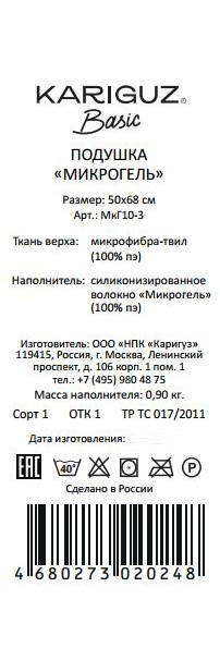 Подушка Kariguz микрогель антибактериальная, 50 х 68см
