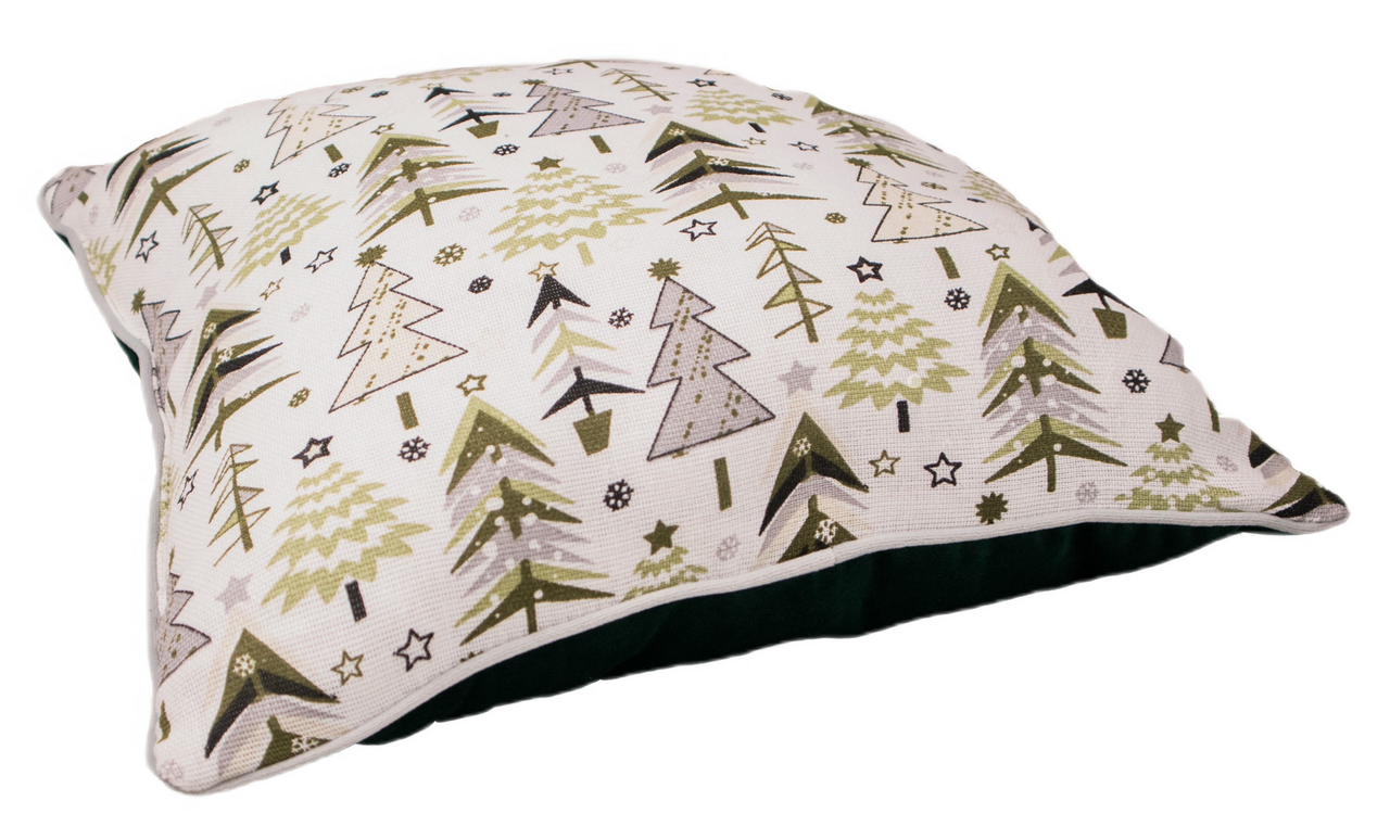 Подушка LinenWay елки декоративная рогожка бархатная с кантом - подушка декоративная двусторонняя с контрастным кантом. Одна сторона хлопковая, из ткани рогожка с новогодним дизайном. Вторая сторона из однотонного бархата. Подушка элегантным дополнением к интерьеру в стиле неоклассика, привнесет в помещение уют и смягчит строгий дизайн.