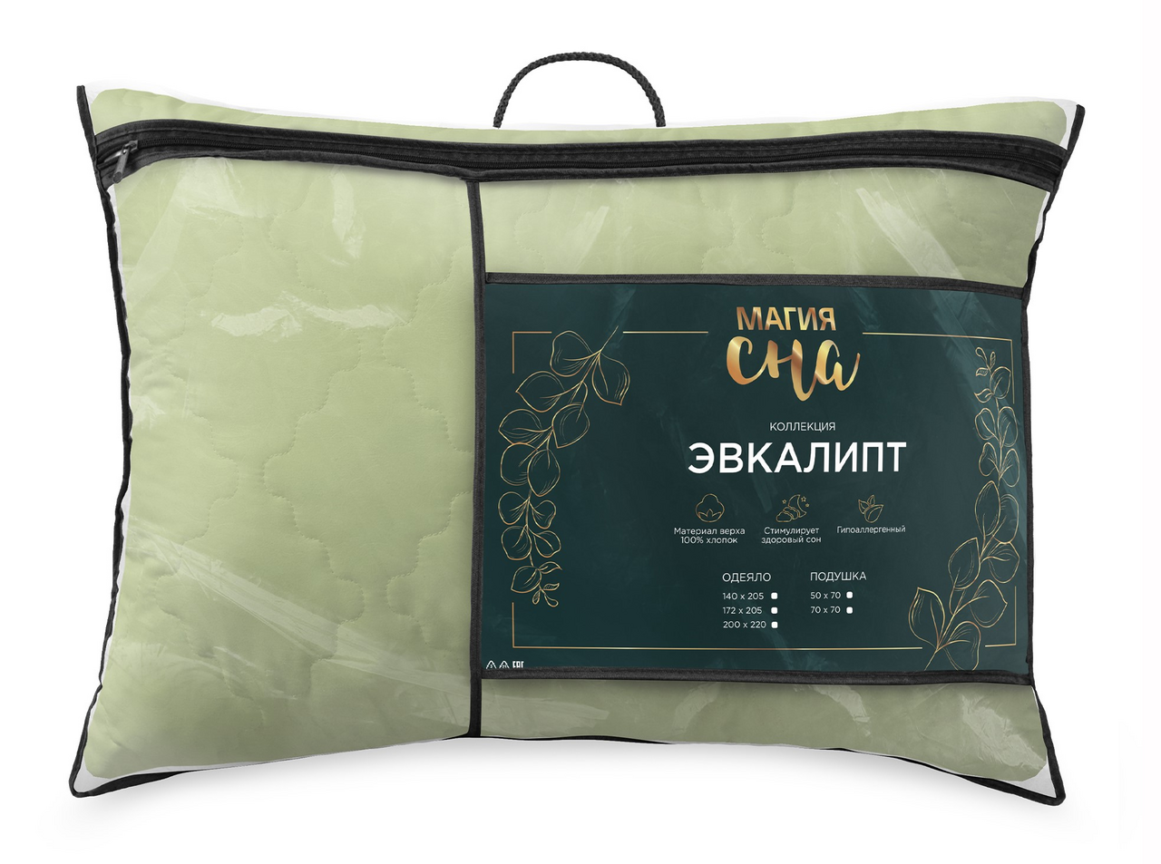 Магия сна - не просто постельные принадлежности, а самостоятельный модный элемент в спальне. идеальна как для взрослых, так и детям. Подушки эвкалипт имеют целебные антибактериальные свойства, отличаются легкостью, воздушностью, способностью дышать, сжиматься и быстро восстанавливать свой объем. Эвкалиптовое волокно - экологически чистый материал, обеспечивающий великолепный теплообмен. Наполнитель прекрасно вентилирует благодаря полой структуре волокна, гигроскопичен и обладает антибактериальными свойствами. Он легкий, гипоаллергенный и не сохраняет запахи, потому даже длительное использование без стирки, исключает появление неприятных запахов. Эфирные масла, содержащиеся в волокнах эвкалипта, испаряются во время сна и оказывают оздоравливающее влияние на кожу и организм в целом. Благодаря такому наполнителю подушки приобретают необычайную легкость, мягкость и комфортность. Ее можно стирать в стиральной машине.