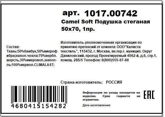 Подушка Camel Soft. Размер: 50х70см. Состав чехла: 50% бамбук, 50% микрофибра; наполнитель чехла: 70% верблюжья шерсть, 30% микроволокно; наполнитель: 100% микроволокно Climalast. Шерсть - экологически чистый и натуральный наполнитель, обладающий высокой теплоизоляцией. Благодаря своей структуре состоящая из пористых клеток с большим количеством полостей, обеспечивает воздухопроницаемость, придавая изделиям удивительную легкость. Шерстяная подушка дышит, всегда остается сухой и комфортной. Такой наполнитель полезен для здоровья, он поддерживает оптимальный микроклимат для сна в любое время года. Материал благоприятно влияет на спящего человека, нормализует кровообращение, расслабляет мышцы. Прочный чехол отличается высокой гигроскопичностью. Плотная ткань микробамбук с особым плетением нитей дополнительно изолирует мелкие частички шерсти, не позволяя им проникать наружу. Подушка рекомендована для сна на боку и на спине. Подушку под голову можно преподнести как оригинальный подарок на любое событие от годовщины свадьбы до гендерных мужских и женских праздников 8 марта и 23 февраля. С полной коллекцией текстиля для дома можно ознакомиться, кликнув на название продавца и собрать свою коллекцию любимого текстиля.