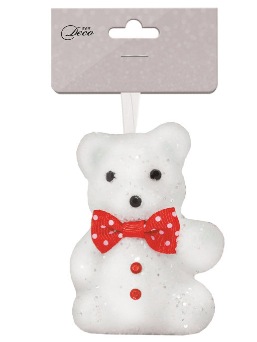 Подвеска B&H Белый мишка с бантиком представляет собой милую фигурку, которая станет украшением любой елки. Шейку животного украшает красный бант в белый горошек. Ее можно использовать в качестве элемента декора для любого помещения. Такую игрушку можно вручить в качестве небольшого сувенира друзьям, знакомым или коллегам по работе. Это украшение можно повесить на елку, рождественский венок или на еловую ветку, разместить в витрине м��газина, подвесить на люстру и т.д.Подвеска в виде белого мишки изготовлена из пенопласта. Этот материал не боится перепада температур. Поэтому его можно использовать в качестве уличного декора. Такая игрушка не разобьется и не сломается при случайном падении.