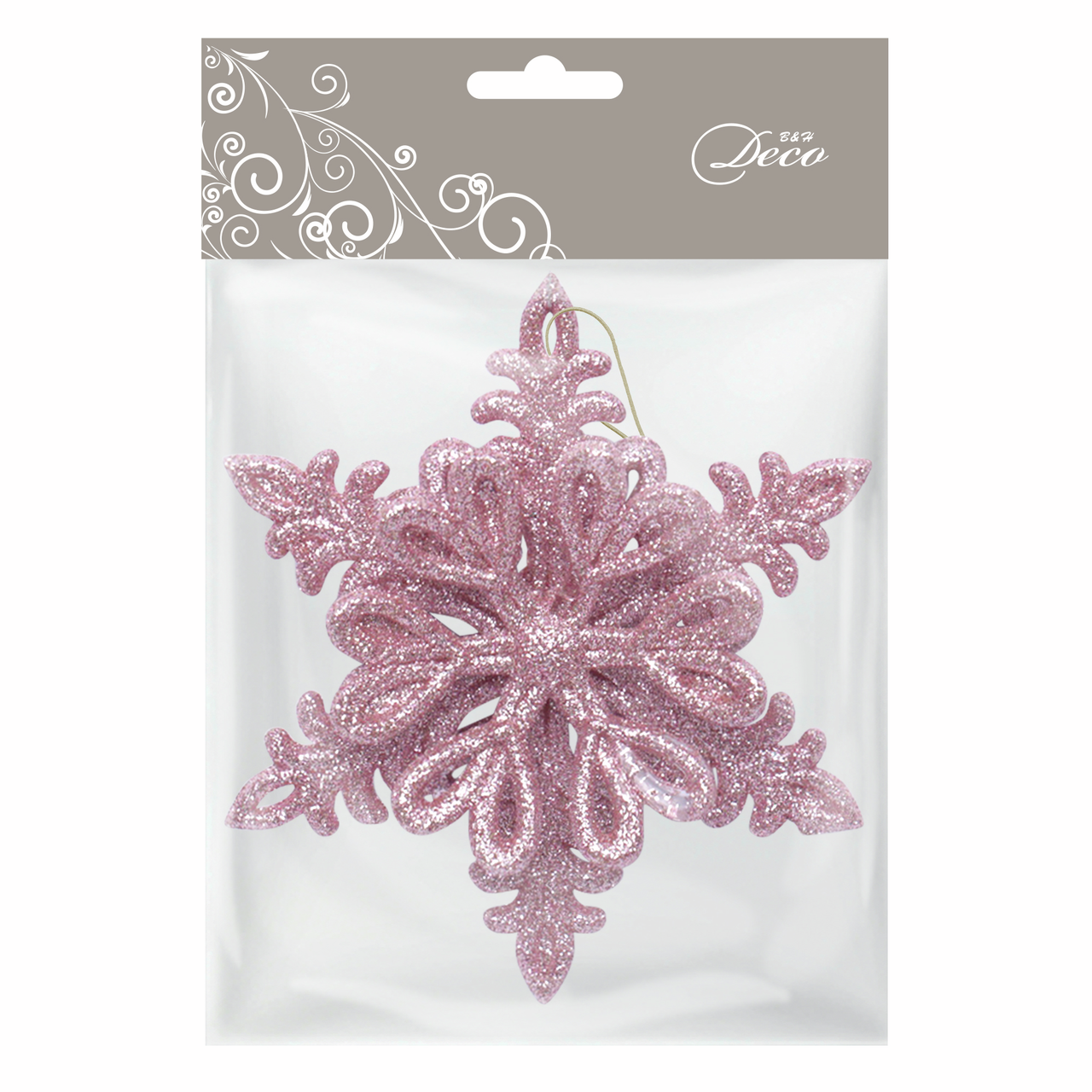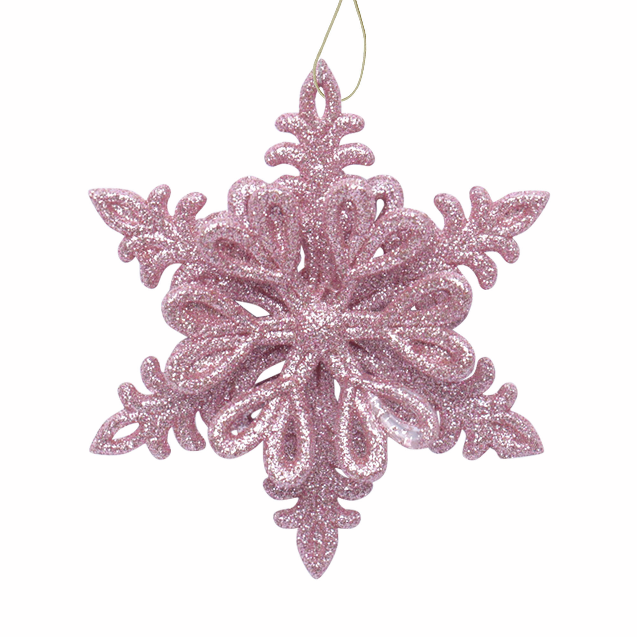 Подвеска декоративная B&H Снежинка с узорами глиттерная розовая