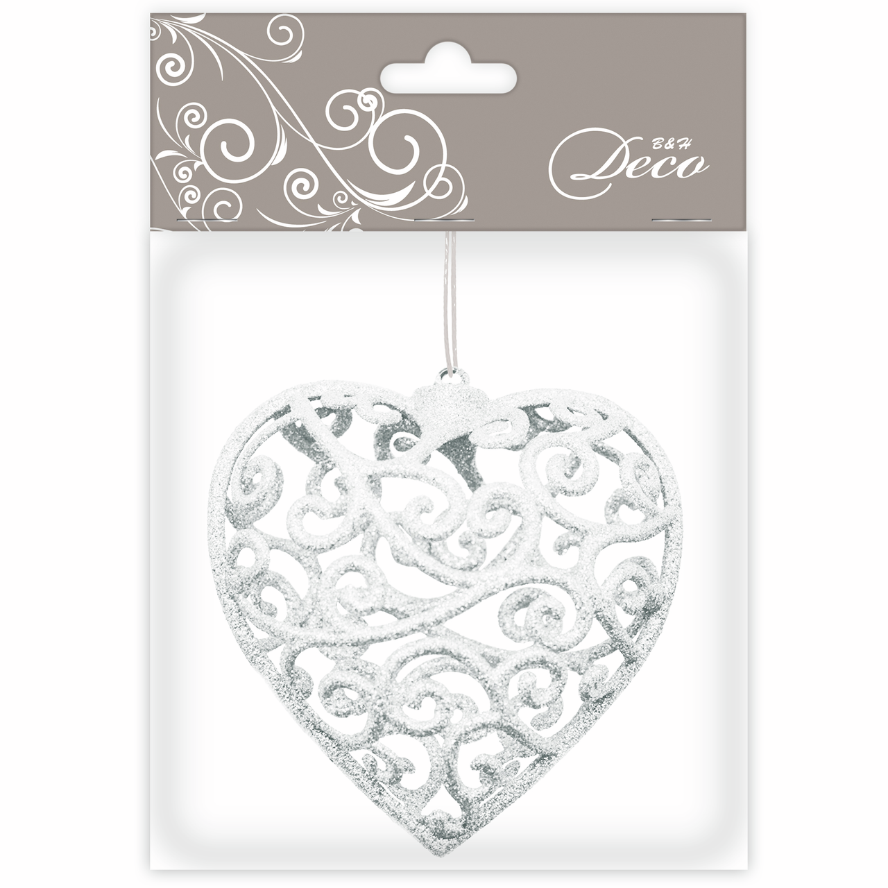Подвеска глиттерная Сердце от торговой марки B&H оригинальное елочное украшение поможет нарядить и сделать сказочно красивой новогоднюю елку или декор вашего дома. Подвеска Сердце выполненна из пластика высокого качества, в форме сердца с узорами серебристого цвета и покрыта декоративными блестками. С помощью специальной петельки украшение можно повесить на праздничную новогоднюю елку. Елочная игрушка - символ Нового года и Рождества. Она несет в себе волшебство и красоту праздника. Создайте в своем доме атмосферу веселья и радости, украшая новогоднюю елку нарядными игрушками, которые будут из года в год накапливать теплоту воспоминаний.