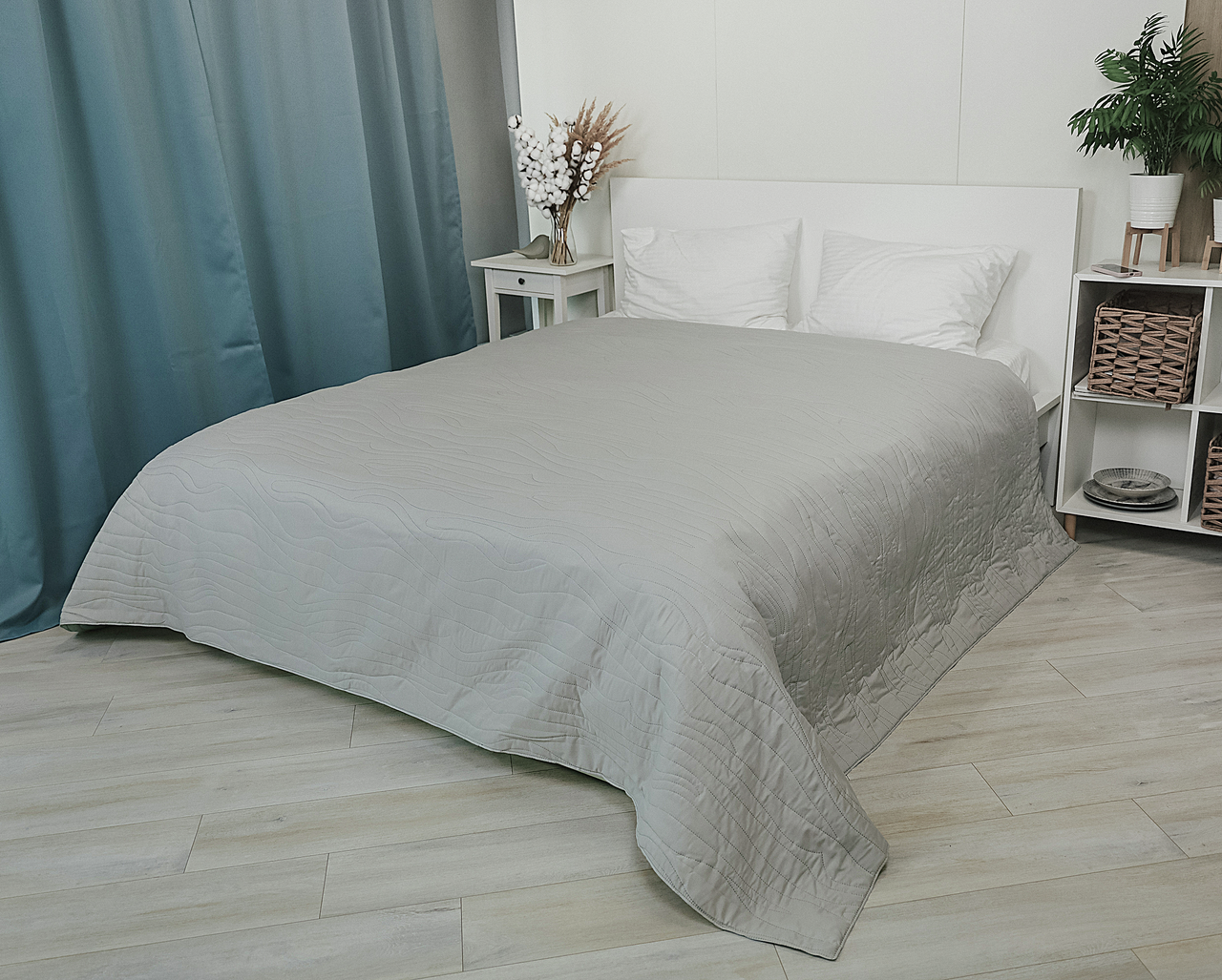 Покрывало стеганое ультразвуковой стежкой, универсальный размер 220х260см, подойдет на кровать, диван. Покрывало пастельного серого цвета идеально впишется в любой интерьер.