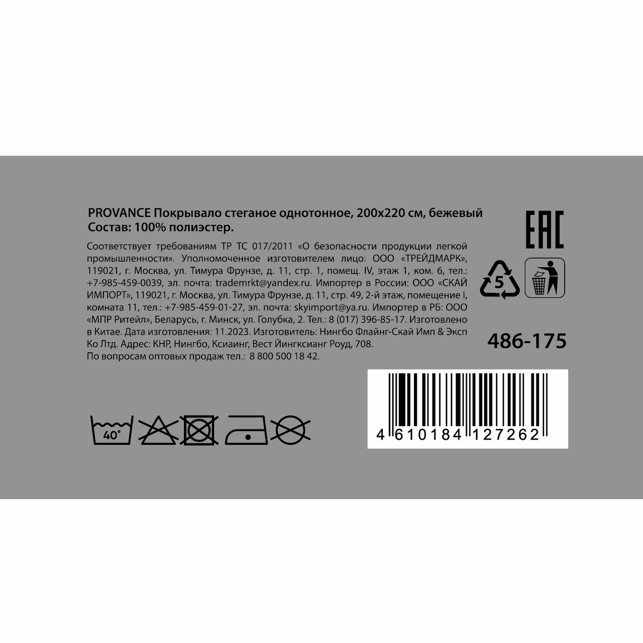 Покрывало Provance стеганое 100% полиэстер бежевое, 200 х 220см