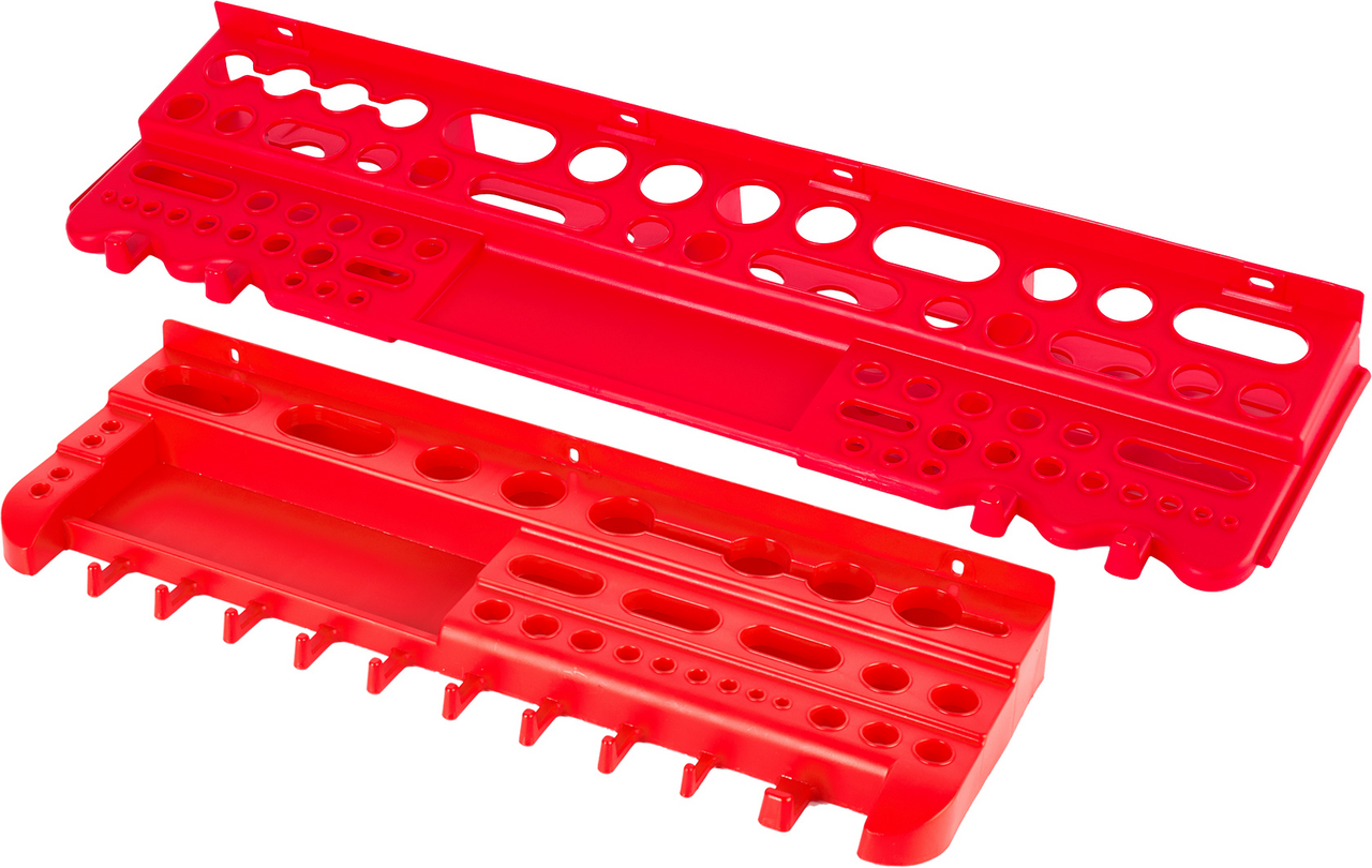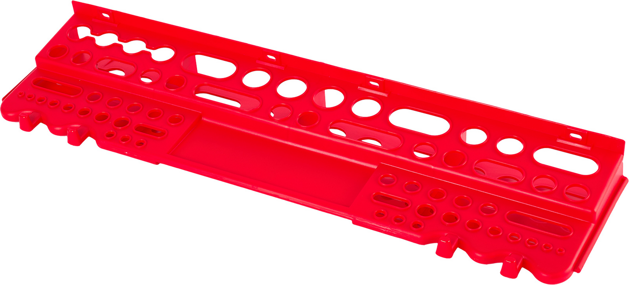 Полка для инструментов Blocker Reef навесная, 62.5см – это удобное приспособление для организации пространства в гараже или мастерской. Она хорошо подойдет тем, кто любит порядок на рабочем месте. Она легко крепится на стене, выдерживает большое количество инструментов и не занимает много места. В ней предусмотрены специальные отверстия для разных предметов, таких как биты, головки, отвертки. Благодаря конструкции открытого типа все, что лежит на полке всегда будет хорошо видно. Она произведена из прочных полимерных материалов высокой плотности, поэтому не треснет и не сломается даже под значительным весом.