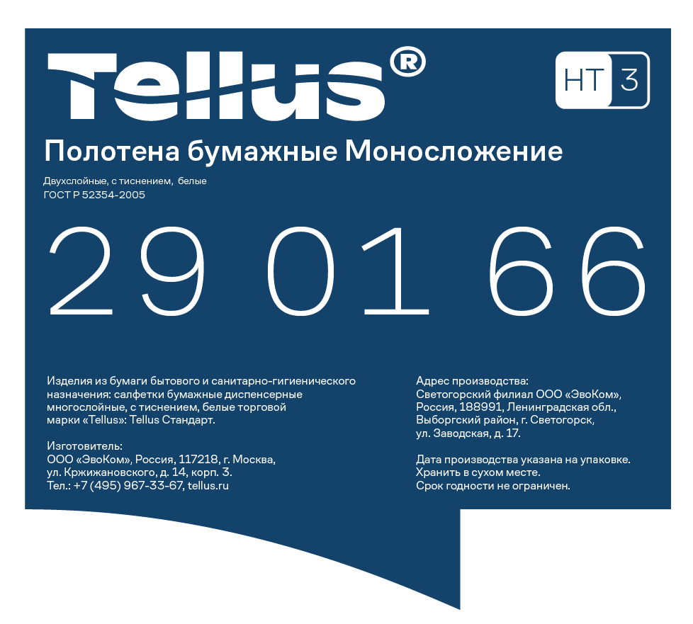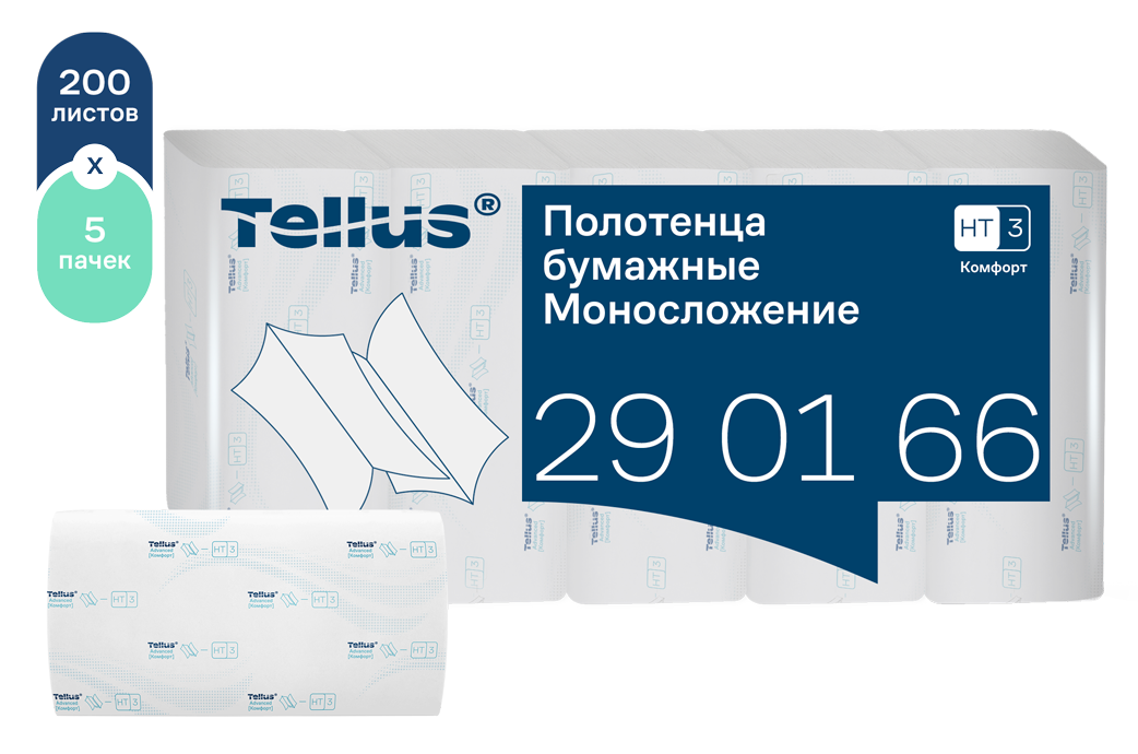 Полотенца бумажные Tellus Комфорт двуслойные Zz-сложения (200л x 5шт), 1000л