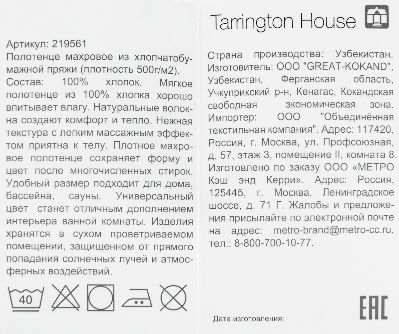 - Бренд TARRINGTON HOUSE