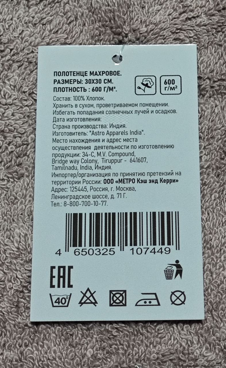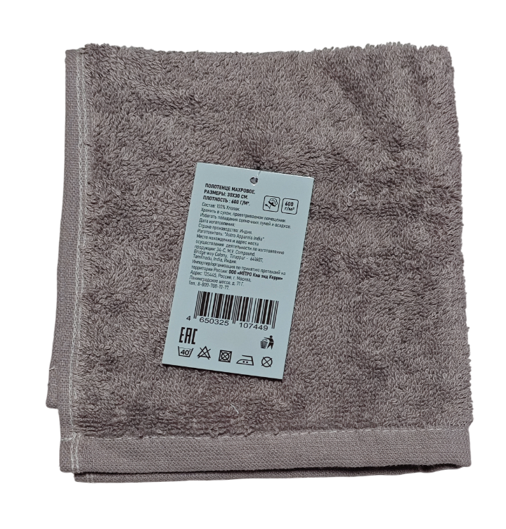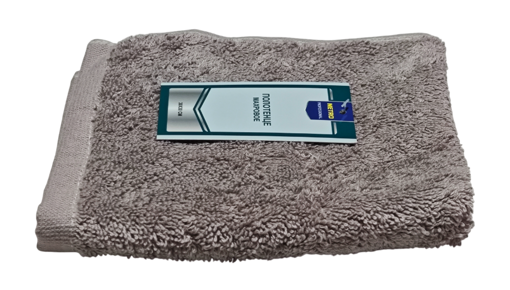 METRO PROFESSIONAL Полотенце махровое бежево-коричневое хлопок 600 г/м2, 30 х 30см
