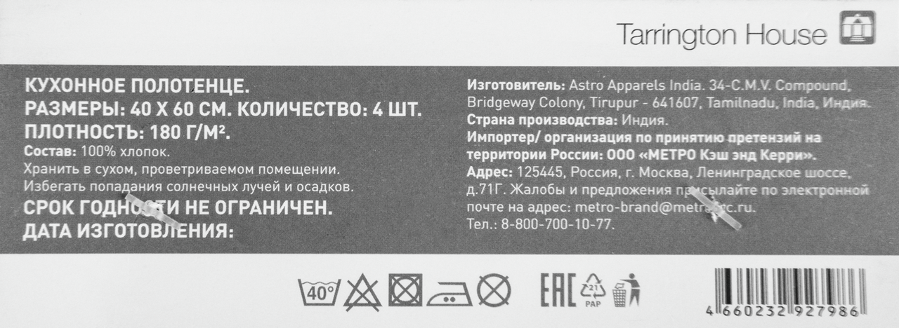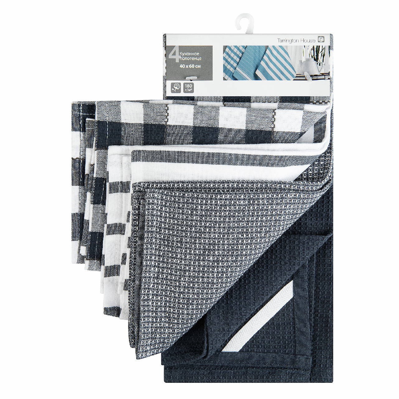 Tarrington House Полотенце вафля кухонное клетка-полоска-однотонное серое плотность 180 г 4 штуки, 40 x 60 см предлагает уникальное сочетание стиля и практичности. Идеальное дополнение для вашей кухни, этот комплект порадует вас своей функциональностью и элегантным дизайном. Главное преимущество этих полотенец — их вафельная текстура, которая обеспечивает отличную впи��ываемость и быстрое высыхание. Вы можете быть уверены, что все капли или пятна будут легко удалены с их помощью. Кроме того, они обладают высокой прочностью и стойкостью к износу, способны несколько лет служить вам верой и правдой. Выбирая полотенца Tarrington House, вы можете быть уверены в их качестве. Они изготовлены из высококачественного материала, который гипоаллергенен и долговечен. Они также легки в уходе и могут легко стираться в стиральной машине. Серый цвет и клетчатый-полосатый узор делают эти полотенца стильными и универсальными. Они органично впишутся в любой интерьер вашей кухни, придавая ему особенный шарм и элегантность. Это не только отличный инвестиционный вариант для вашей собственной кухни, но и идеальный подарок для близких вам люде��.