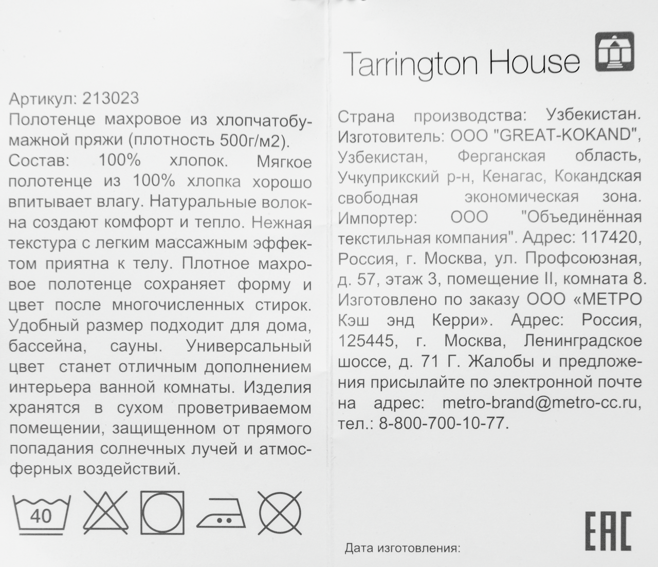 Tarrington House Полотенце махровое пепельно-серое 500г, 50 x 90см - это шикарный презент для близких, родных а так же для себя любимого. Банное полотенце - это сочетание качественных материалов и приемлемой стоимости. Благодаря нежному хлопку, полотенце хорошо впитывает влагу, а самое главное, что оно легко стирается и быстро высыхает. Такое полотенце обязательно украсит вашу ванну, дополнит интерьер и поможет ощутить настоящую роскошь от использования экологичных и мягких полотенец