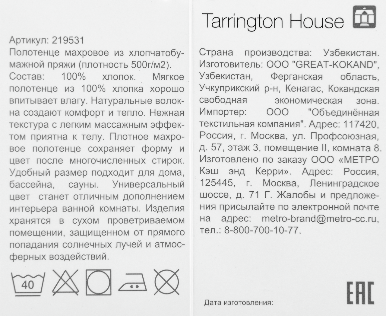 Полотенце махровое Tarrington House кубинский песок 500 г, 50 x 90 см — прочное и приятное на ощупь изделие для банных процедур. Благодаря своим дизайнерским особенностям оно подойдет в качестве презента для близких, друзей или коллег. Модель сочетает в себе мягкий хлопковый материал и стильный внешний вид. Махровая экологичная ткань из натуральных волокон не вызывает аллергических реакций на коже. Особая ворсистая структура обеспечивает ее легкий массаж при вытирании. Благородный цвет кубинский песок гармонично вписывается как в классический, так и современный интерьер, подходит для использования в душе, на пляже или в бане. Благодаря нежному хлопку полотенце надежно впитывает влагу и быстро высыхает. Оно способно пережить многократные стирки, при этом сохраняя форму и цвет. Удобный размер 50 х 90 см подходит как для лица, так и всего тела.
