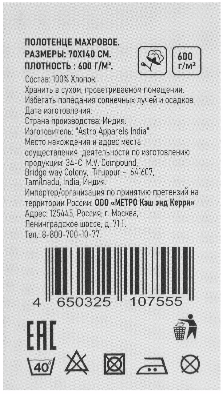 Махровое полотенце из хлопка с плотностью 600 г/м2 это отличный выбор для тех, кто ценит качество, комфорт и стиль. Будь то для использования в домашних условиях или в гостинице, такое полотенце станет надежным помощником в уходе за кожей.
