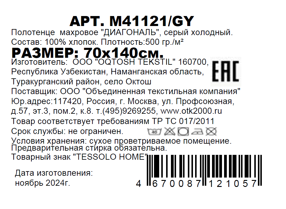 - Размер полотенца, см 100 х 150