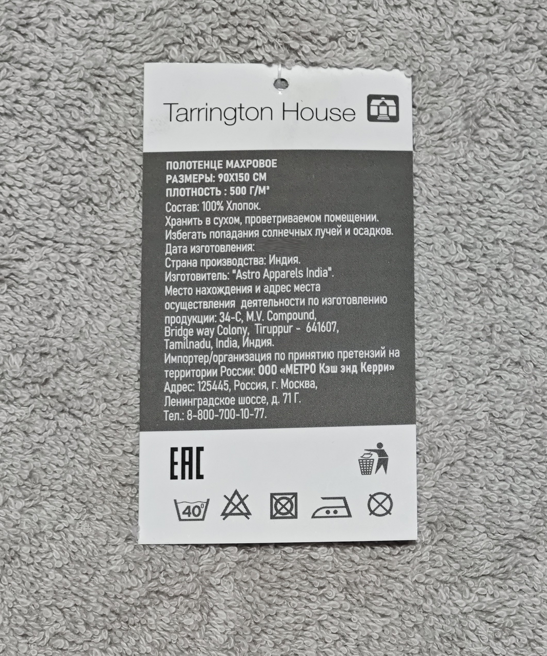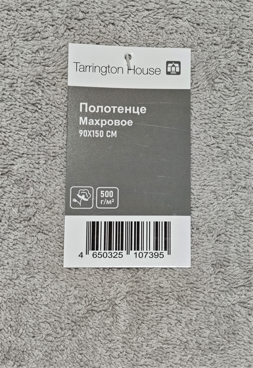 Tarrington House Полотенце хлопок серое махровое 500 г/м2, 90 х 150см