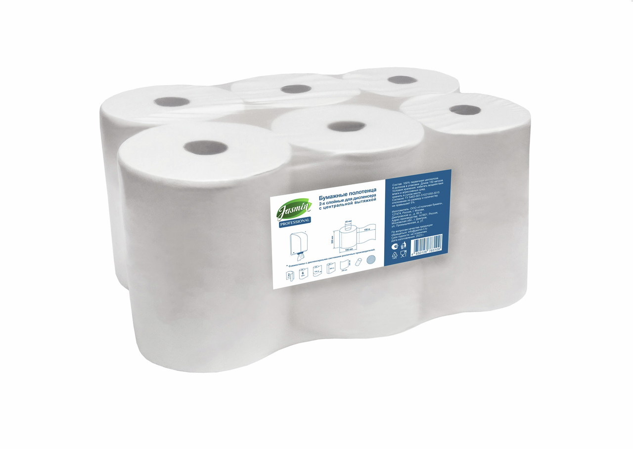 Полотенце бумажное Jasmin Professional для диспенсера 2 слоя, 6шт