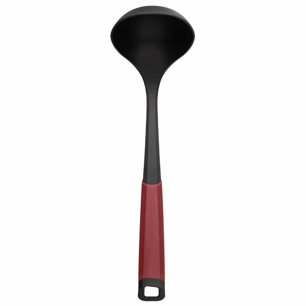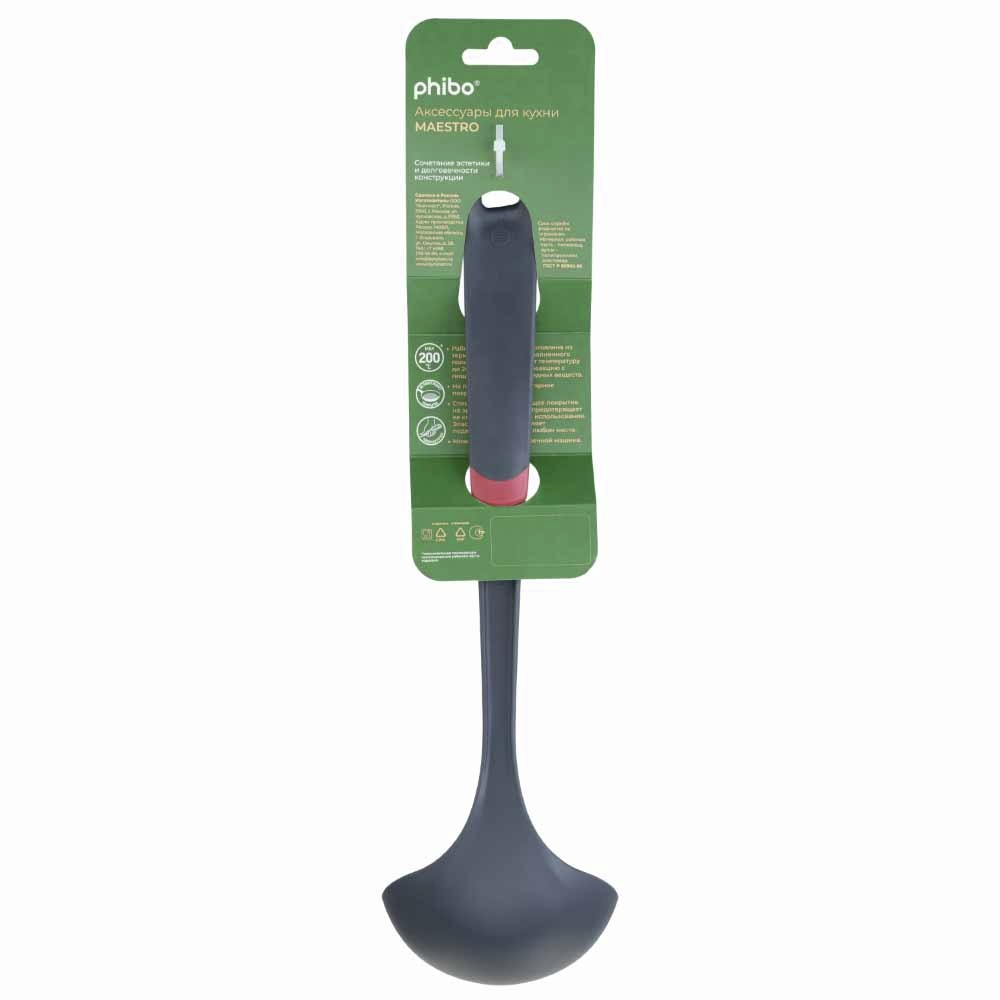 Премиальная серия аксессуаров Maestro от Phibo для решения любой задачи на кухне. Сочетание эстетики и долговечности. Идеальны в использовании на антипригарных покрытиях. Половник изготавливается из стеклонаполненного полиамида: он выдерживает температуру до 200C, не повреждает тефлоновую посуду и моется в посудомоечной машине. Порция супа или соуса удобно набирается половником с чашей оптимального объёма 140мл. Благодаря крутым стенкам чаши жидкость из половника переливается аккуратно и не расплёскивается. Эргономичная ручка, благодаря вставки из эластомера и матовой поверхности, не скользит в руках.