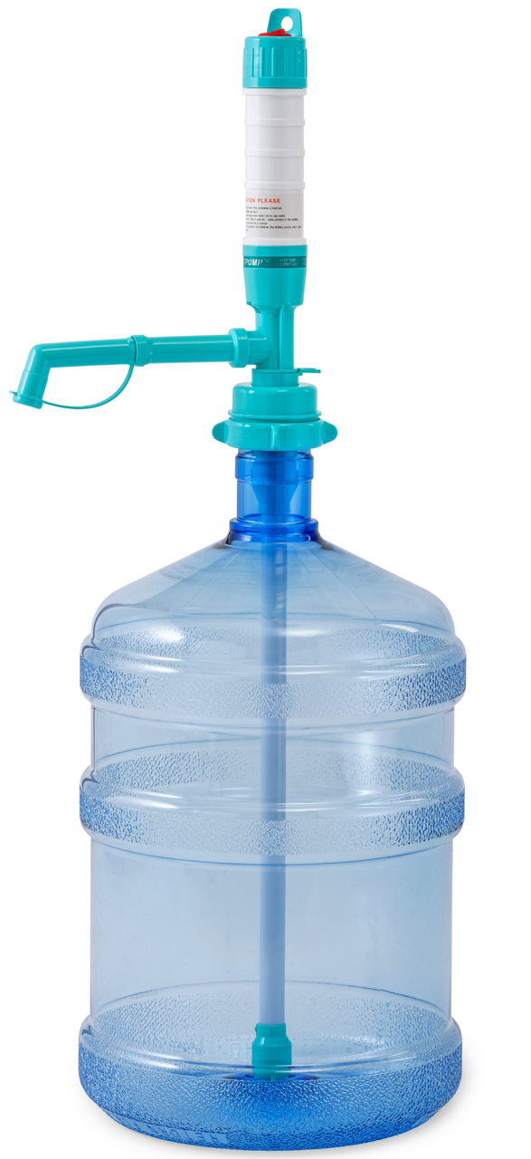 Электрическое устройство для розлива воды комнатной температуры из бутыли объёмом 18.9 л. Работает от батареек (2 элемента типа D). Комплекта батареек хватает на 6-8 месяцев при использования для розлива 1 бутыли в неделю (18.9 л). Подача воды осуществляется погружным насосом. Устройство надевается на бутыль, жёстко фиксируется зажимной гайкой. Розлив воды из бутыли осуществляется при нажатии на выключатель.