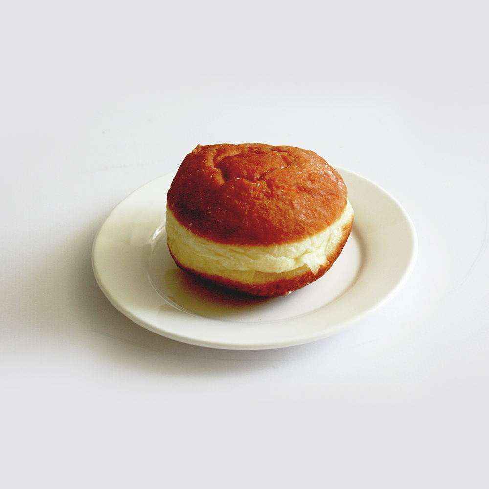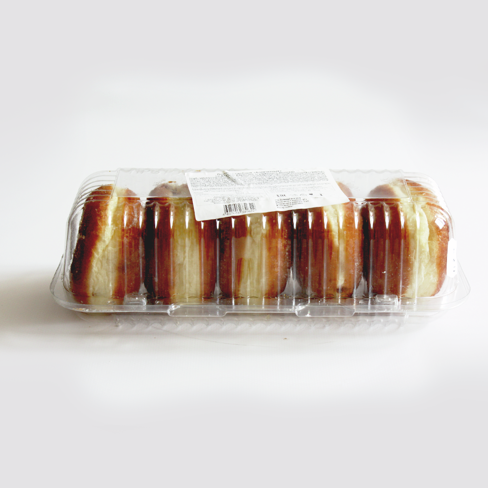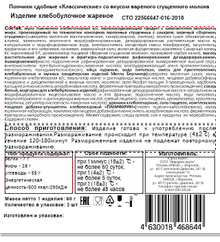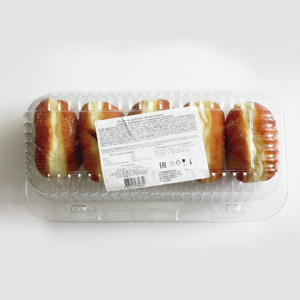 Мука пшеничная хлебопекарная в/с, продукт молокосодержащий с заменителем молочного жира сгущенный с сахаром вареный, яйца куриные, вода питьевая, смесь хлебопекарная Мелла Берлинер, сахар белый, маргарин для хлебобулочных изделий, дрожжи хлебопекарные, соль пищевая, сахарная пудра.