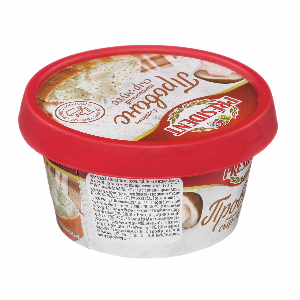 Сыр творожный President грибы, 120г БЗМЖ станет прекрасным дополнением к утреннему хрустящему тосту или для других блюд, например, закусочному торту или рулету из лаваша. А можно просто подать продукт к крекерам или хлебным палочкам. Нежный сливочно-творожный вкус в сочетании с грибным ароматом не оставят равнодушными никого. Творожный сыр производится из натурального молока и заквасок, после чего в него добавляют высушенные и измельченные грибы, натуральный ароматизатор. Не содержит пальмового масла, искусственных усилителей вкуса и вредных консервантов, поэтому продукт можно без опасения давать детям.