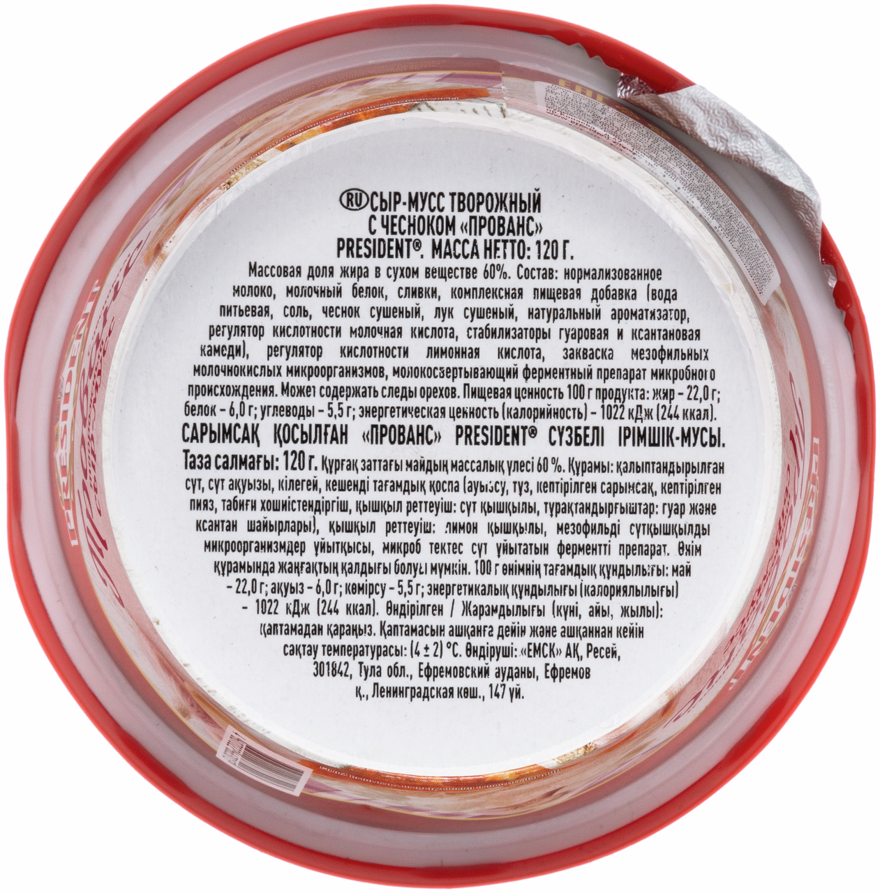 Сыр-мусс творожный President Прованс c чесноком, 120г