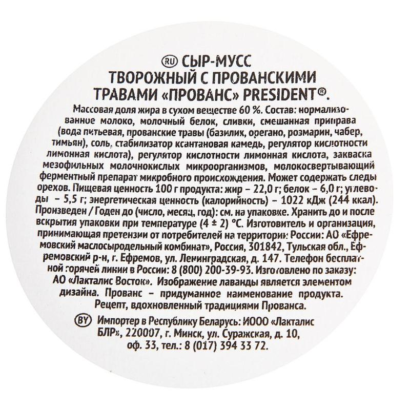 Сыр-мусс творожный President Прованс с прованскими травами, 120г