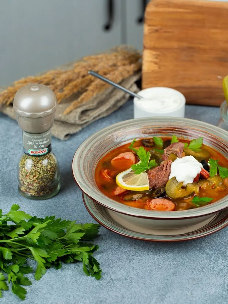 Приправа в мельнице Для мясных блюд Kotanyi, 40 г придаст яркий вкус и приятный аромат блюдам из мяса. В ее состав входят различные овощи и специи. Их сочетание поможет создать изысканные акценты в привычных блюдах. За счет упаковки из стекла, продукт долго сохраняет свежесть и насыщенный аромат. В мельнице предусмотрены две степени помола. Мелкие частицы идеально подойдут для фарша и гуляша, а крупные хорошо дополнят стейки и отбивные. Приправа выгодно подчеркнет вкус говядины, свинины, баранины и мяса птицы.