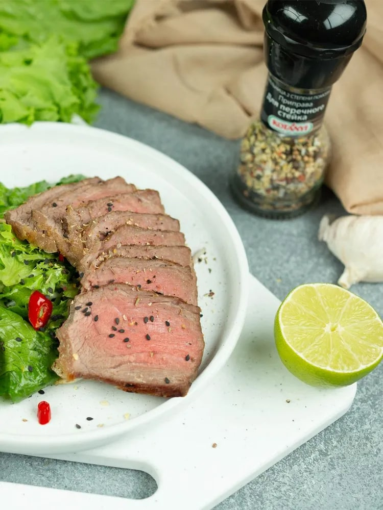 Приправа Для перечного стейка Kotanyi, мельница, 45 г улучшает мясные блюда и придает им яркий, насыщенный и пикантный островатый вкус. Она подойдет к стейкам из говядины, баранины, ягнятины и любому другому мясу, которое приготовлено в сковороде или пожарено на гриле. В состав приправы входит йодированная морская соль, гранулированный лук и чеснок, разные виды перца, а также пряные средиземноморские травы: розмарин, тимьян и кориандр. Смесь весом 45 грамм помещена в компактную ручную мельницу эргономичной формы, которая комфортно лежит в руке и не выскальзывает даже из мокрой ладони. Мельница имеет две степени помола и снабжена удобной пластиковой крышкой, которая обеспечивает герметичность и исключает случайное просыпание приправы.