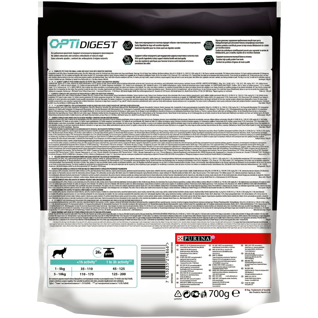Корм для собак Pro Plan Optisavour с ягненком, 700 г с натуральными пребиотиками поддерживает правильное пищеварение и оптимальные показатели веса. Продукт содержит натуральные компоненты и незначительное количество жиров. В составе отсутствуют красители и ароматизаторы, поэтому он не вызывает аллергические реакции. Мясо, субпродукты, растительный белок становятся главными строительными элементами, способствующими нормальному развитию опорно-двигательного аппарата, костной ткани, мышц. Минеральные вещества и витамины А, D3, В, С благоприятно воздействуют на работу мозга, нервной, пищеварительной и сердечно-сосудистой систем. Полезные ингредиенты также влияют на рост бифидобактерий, поэтому значительно улучшается баланс микрофлоры кишечника, качество стула. Корм легко переваривается и усваивается. Уникальная формула Optisavour представляет собой сочетание питательных веществ и подходит даже для чувствительного пищеварения. Она предупреждает ряд заболеваний, связанных с печенью, почками, желудком и другими проблемами ЖКТ. Продукт отличается хорошей усвояемостью нутриентов. Он поставляется в удобных для переноски пакетах, поэтому их можно брать с собой в поездки или путешествия вместе с питомцем.